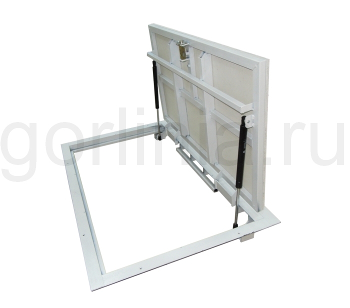 АМО с амортизаторами в проём 600п*700 мм. сварен из стальной трубы и уголка 40х40х4мм. Окрашен в высокотемпературной камере порошковой эмалью. Предназначен для использования внутри помещений. Габаритный размер рамы на полу 772х672 мм.Укомплектован пневматическими подъемниками, скрытыми петлями и регулируемым замком со съемной ручкой. Тип открывания распашной. Крышка двери размером 637х582 петля мм подготовлена под облицовку напольной плиткой или доской ламината по прилагаемой инструкции. Купите АМО 600п*700 по специальной цене от производителя. Заказывайте с доставкой по России!