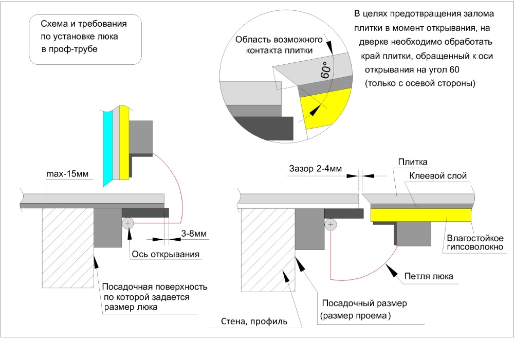 Внимание! Допускается вылет плитки за размер полотна 880х578 по боковым и по нижней сторонами до 10 мм. Верхнюю часть необходимо керамики необходимо располагать на створке и стене, следуя инструкции производителя.