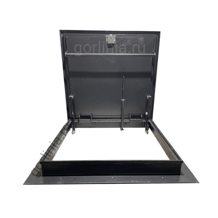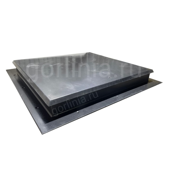 Откидная крышка закрыта сверху гладким стальным листом с загнутыми к низу краями, вылетающими на 25 мм за периметр коробки. Внутри каркаса створки между ребрами обвязки проложен рулонный минеральный утеплитель 50 мм, подшитый снизу листом 1 мм.