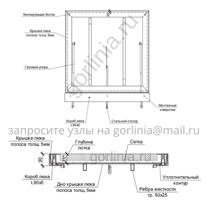 Корпус сварен из углового профиля горячего проката с толщиной стенки 5-6 мм; корыто - из листового проката 5-8 мм, с обвязкой поддона профильной трубой 50х25. Сварка аргонно-дуговая. Характер шва: сплошной с присадками меди.