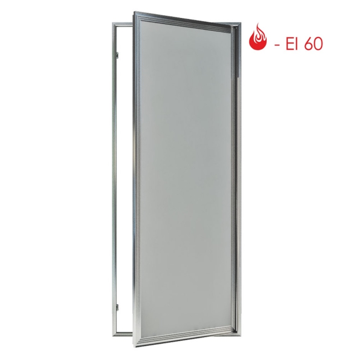 Базовая конструкция из коробчатого алюминиевого профиля на осевых шарнирах доработана огнеупорными элементами: минеральной плитой в сэндвиче из ГВЛ, термоактивным ленточным уплотнителем по притвору в раме.